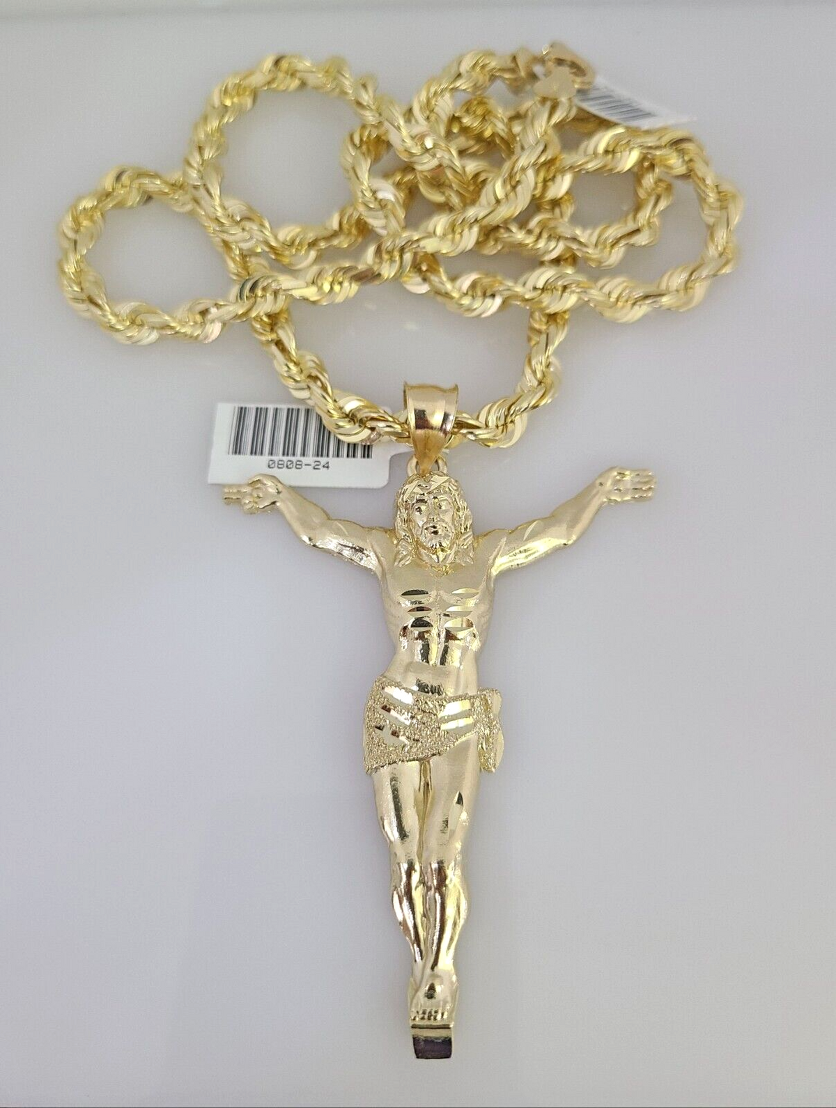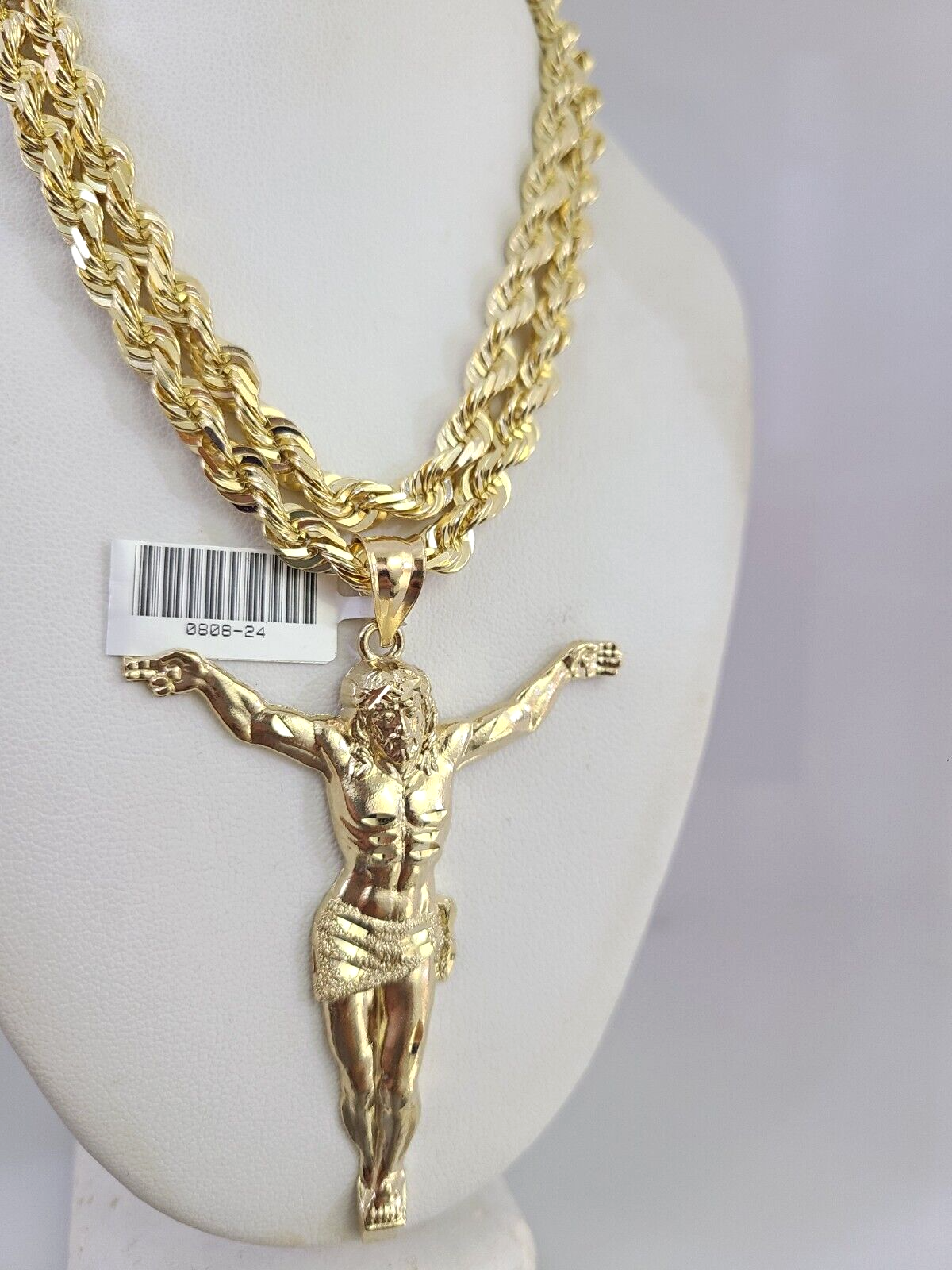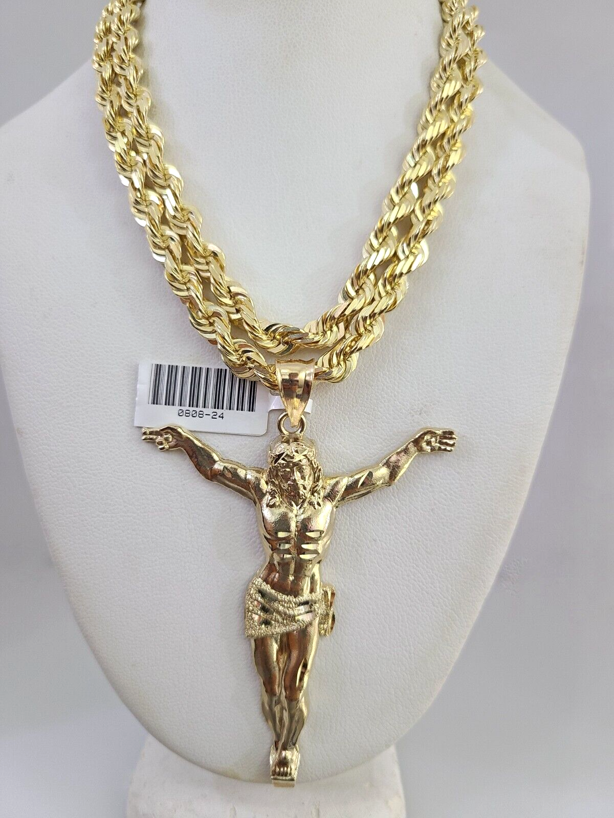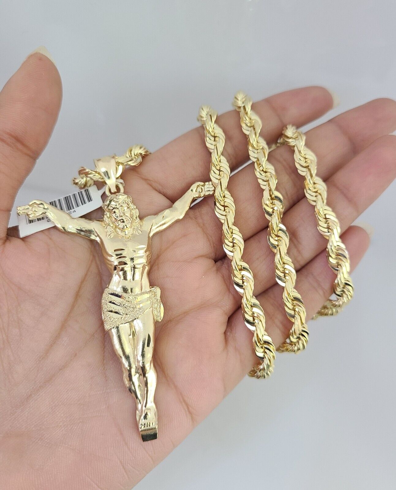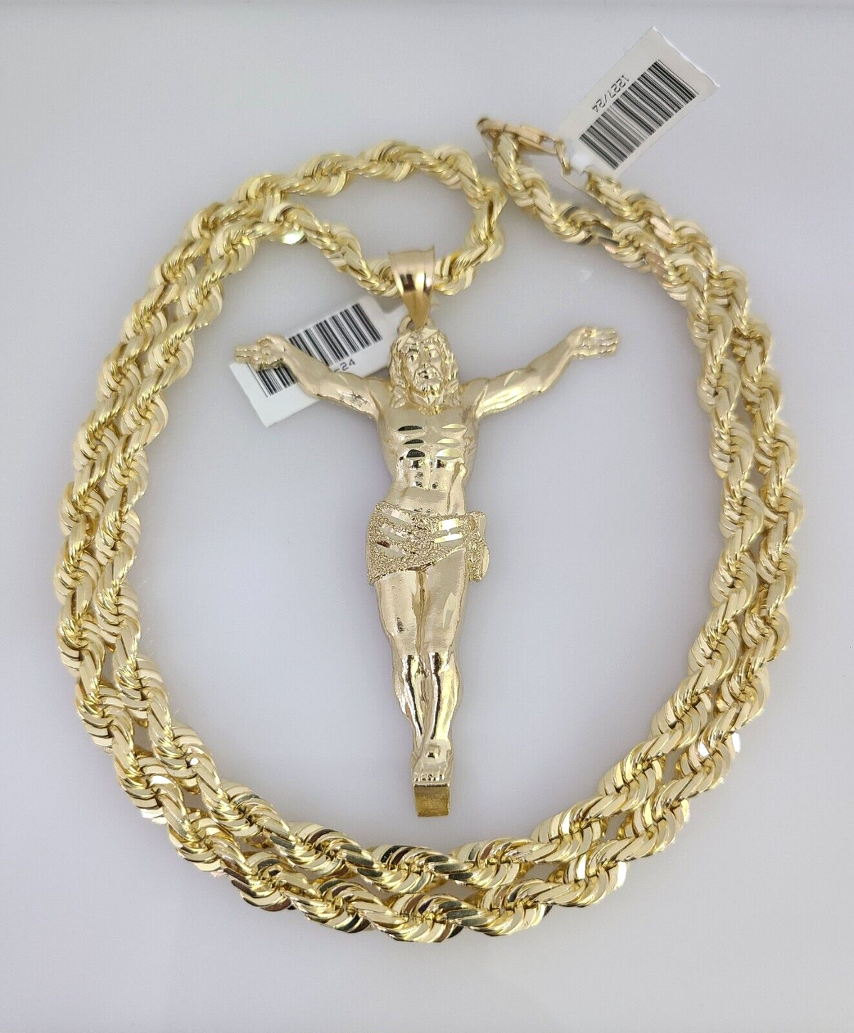 REAL 10k Solid Rope Necklace Jesus Crucifix Pendant SET Chain 20"-30'' 6mm Gold - 22 inch with charm