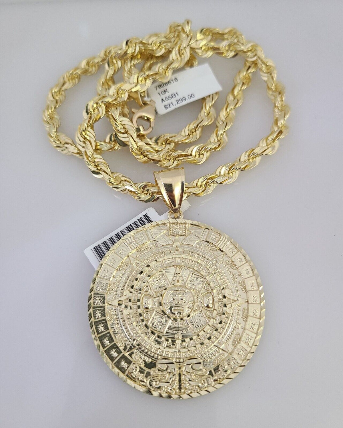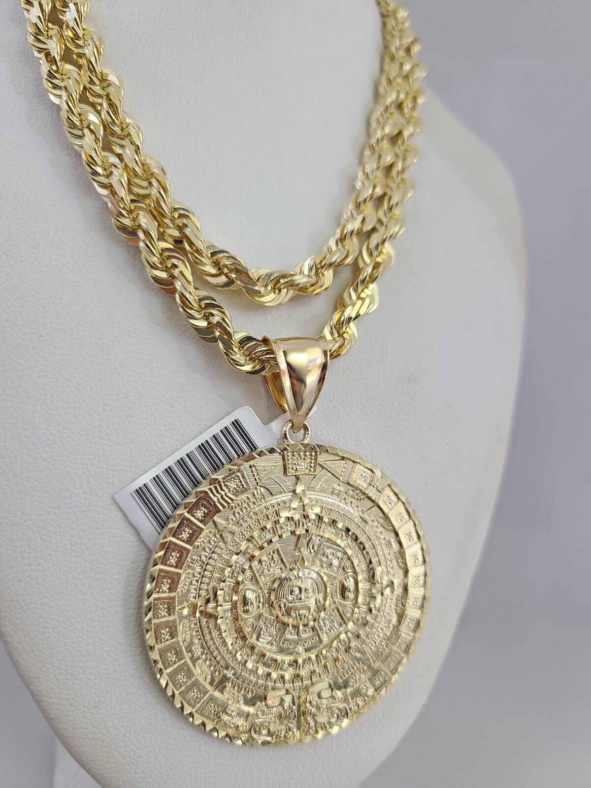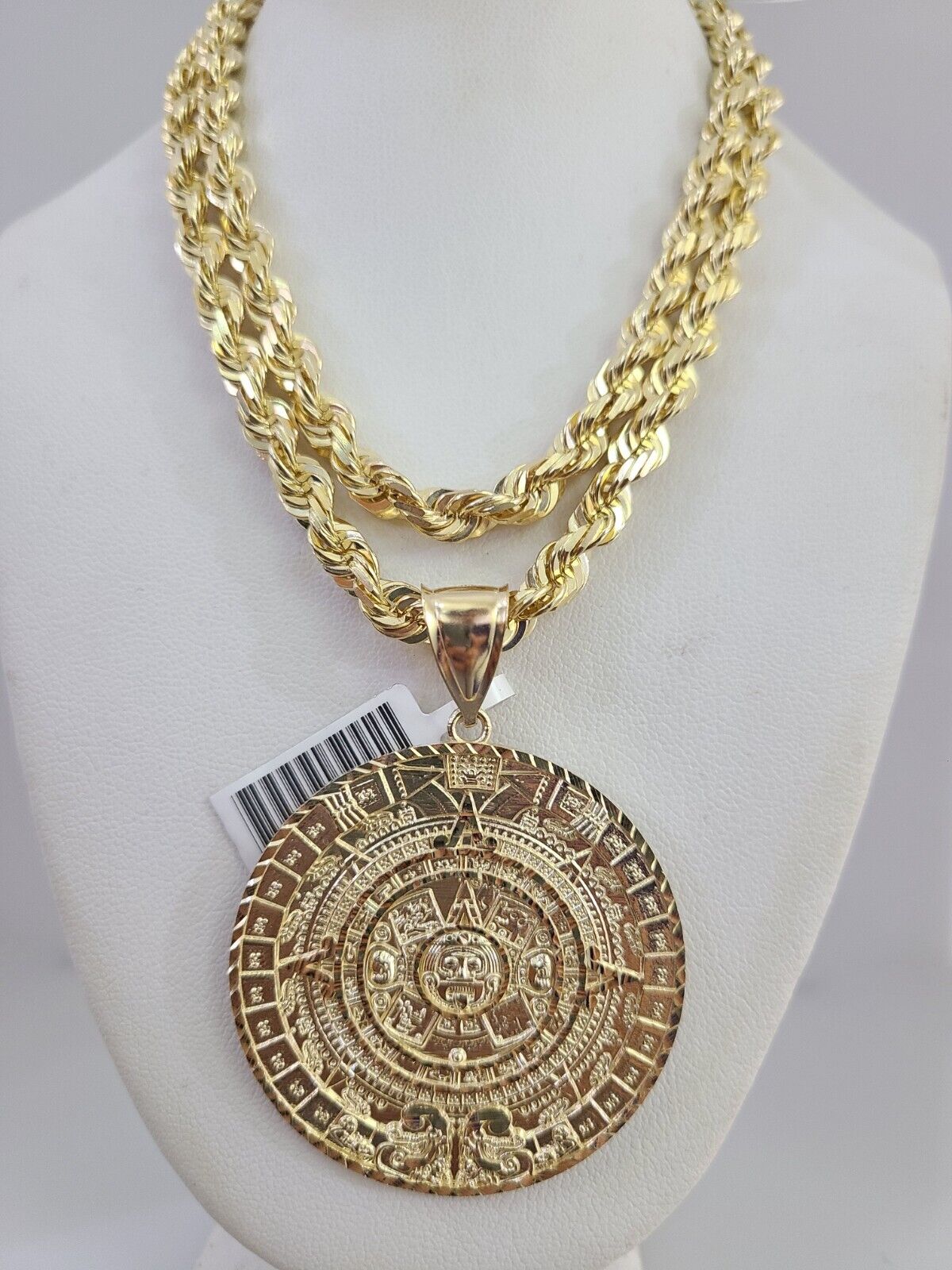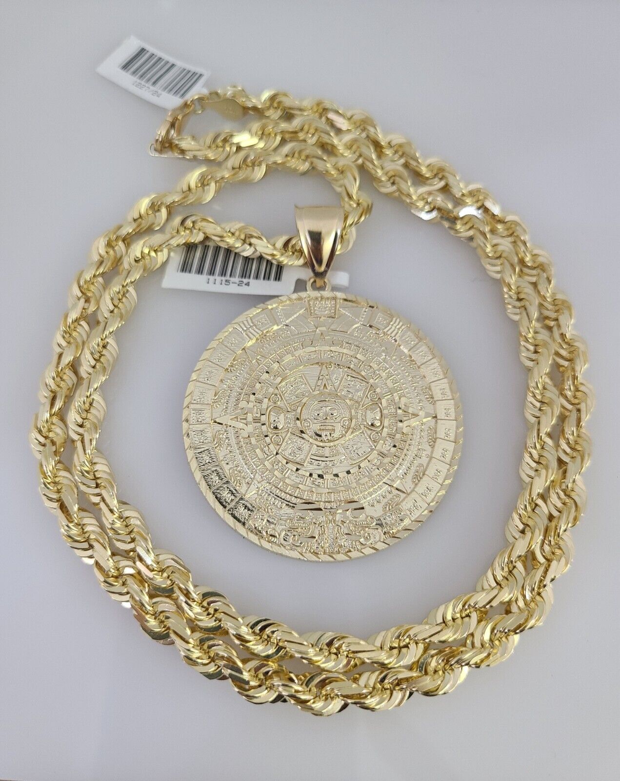 REAL 10k Solid Rope Necklace Mayan Calendar Pendant SET Chain 20"-30'' 6mm Gold - 22 inch with charm