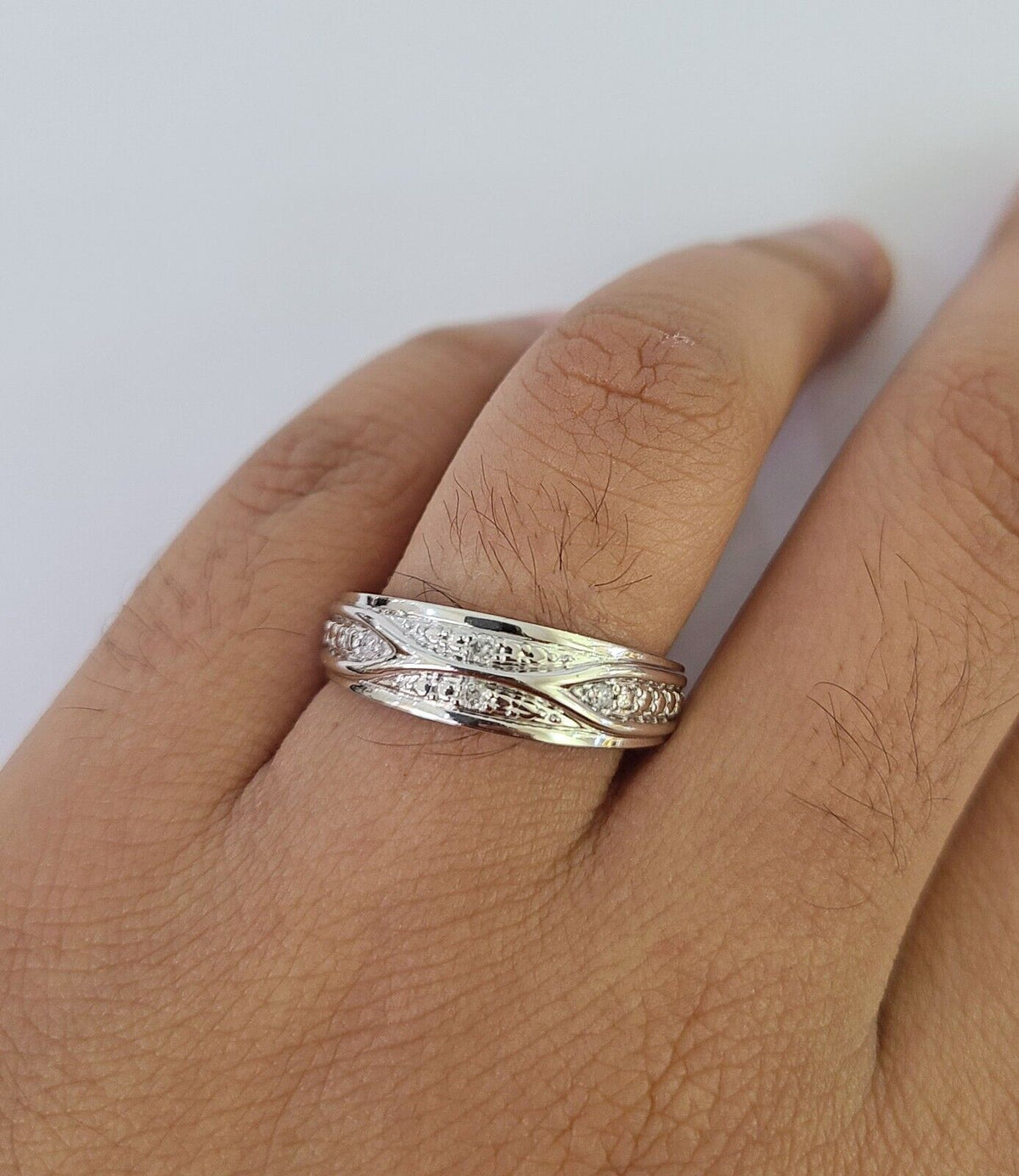 REAL 10k White Gold Diamond Ring Ladies Men Trio SET Wedding Engagemen – Goldenlinq index