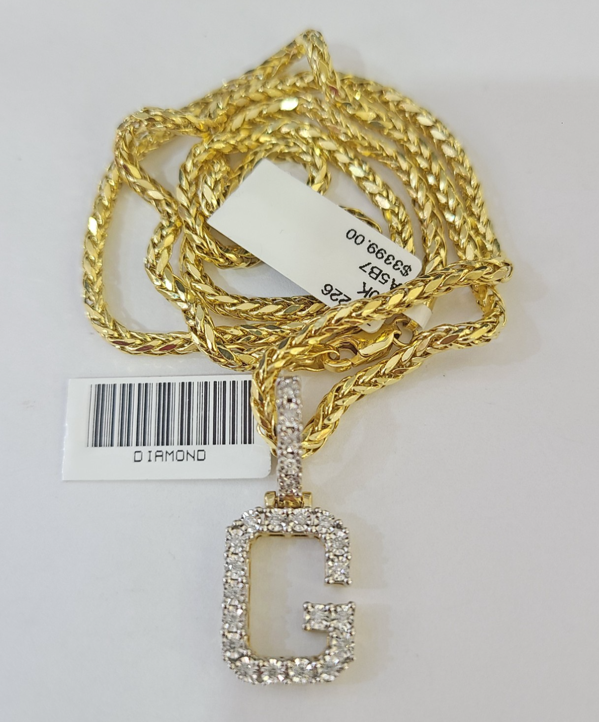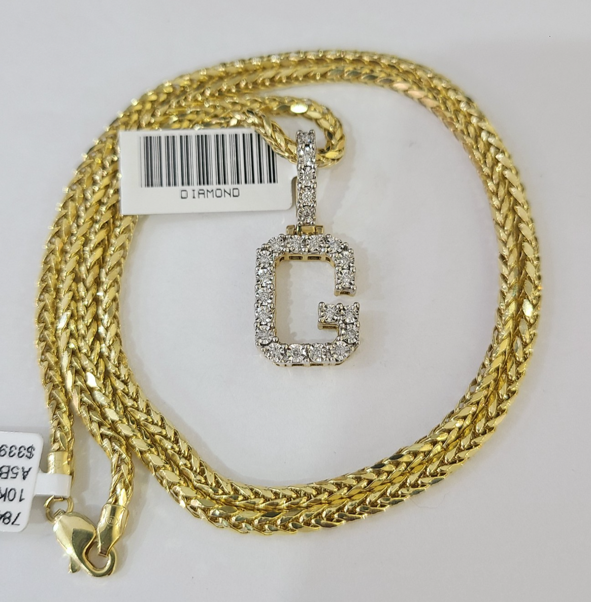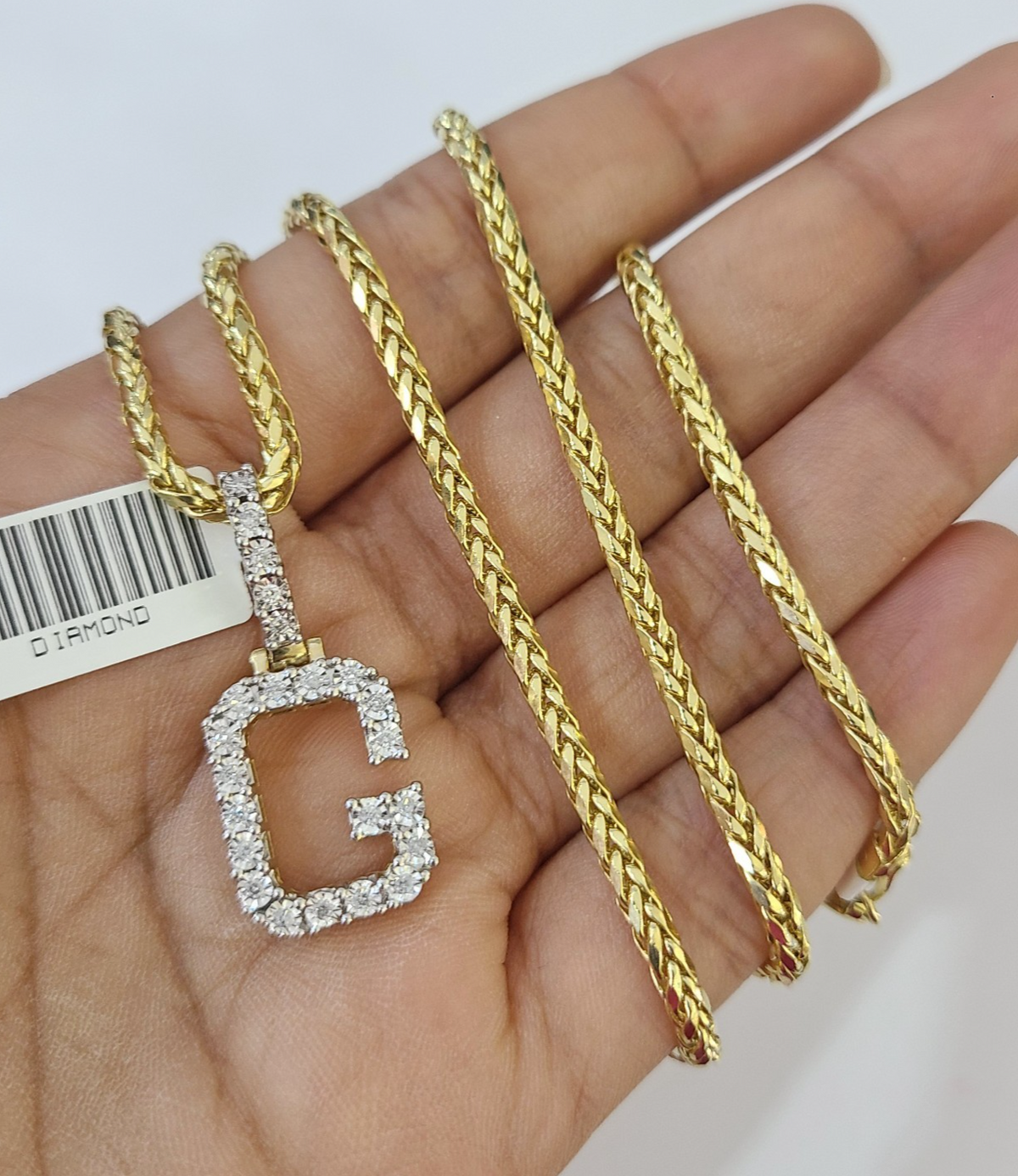 REAL 10k Yellow Gold Palm Chain G Diamond Initial Pendant Charm 3mm SET Necklace - 20 Inch with Chain