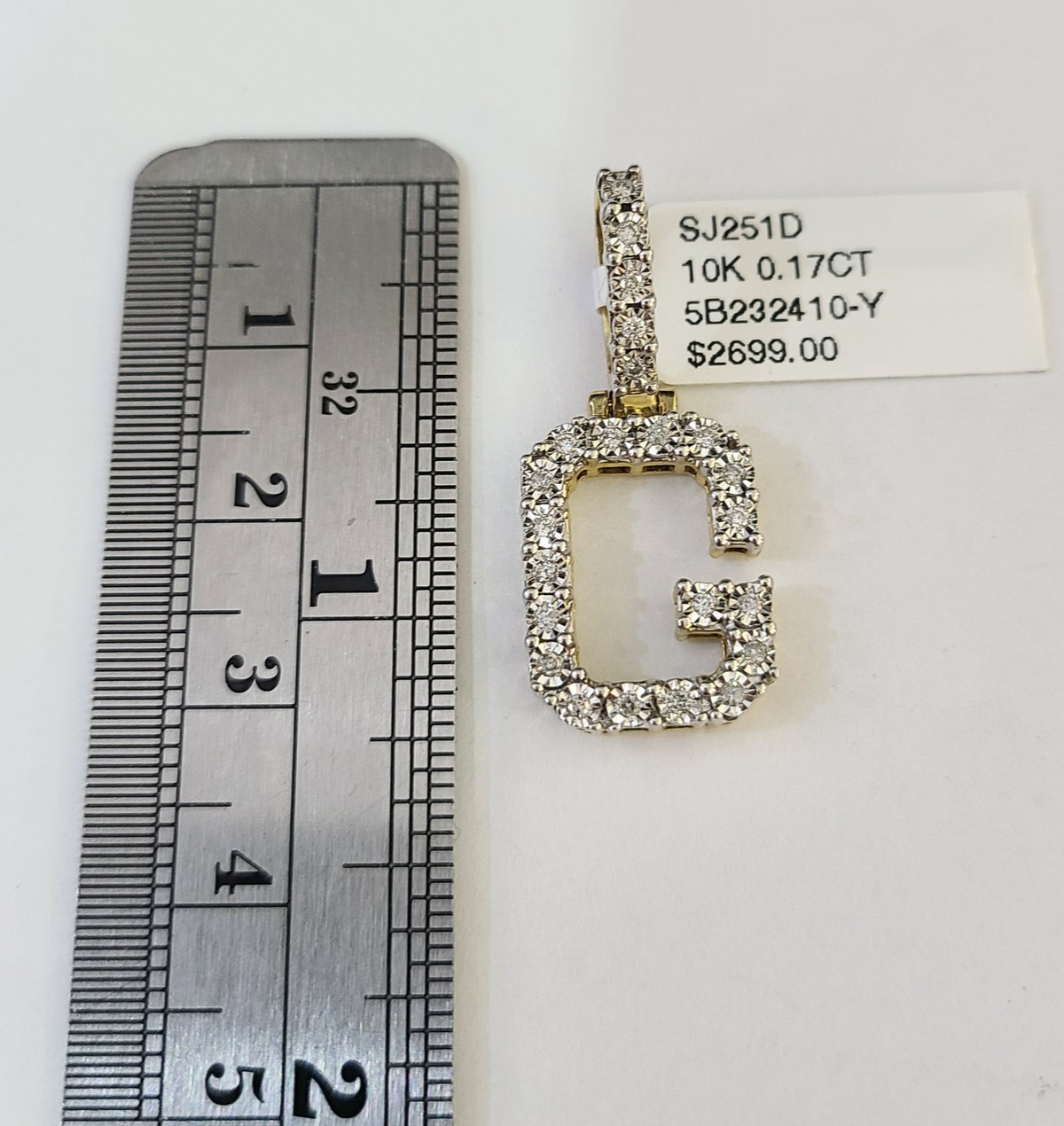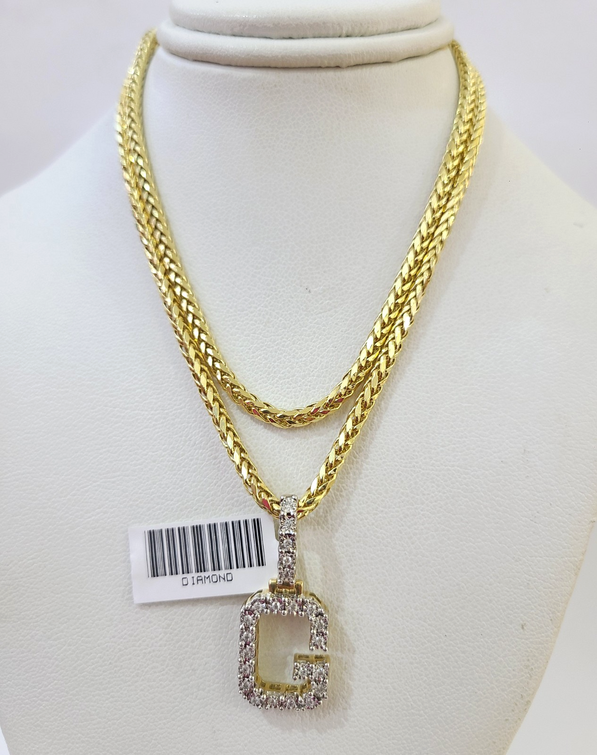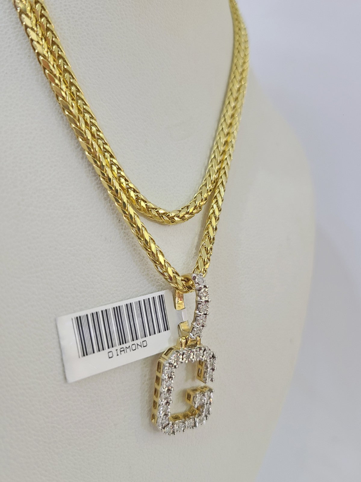 REAL 10k Yellow Gold Palm Chain G Diamond Initial Pendant Charm 3mm SET Necklace - 20 Inch with Chain